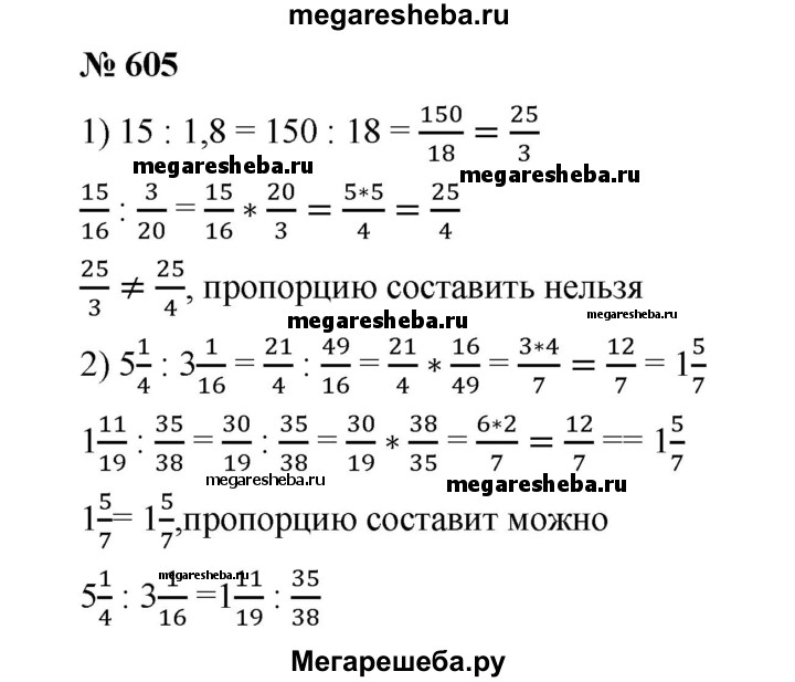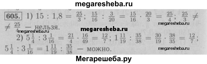 Подробный решебник (ГДЗ) по Математике за 6 (шестой) класс - готовый ответ §20 упражнение - (605). Авторы учебника: Мерзляк, Полонский, Якир, Базовый уровень. Издательство: Вентана-граф 2016-2023.