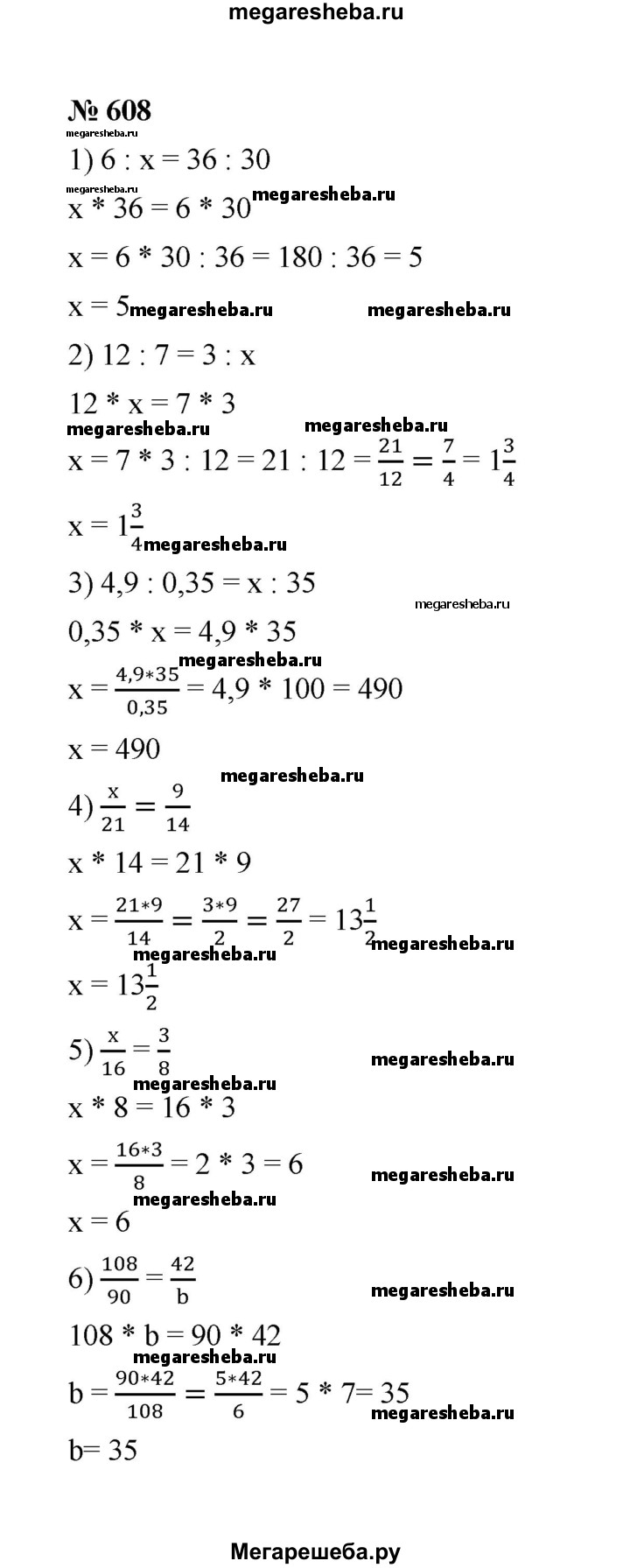 Подробный решебник (ГДЗ) по Математике за 6 (шестой) класс - готовый ответ §20 упражнение - (608). Авторы учебника: Мерзляк, Полонский, Якир, Базовый уровень. Издательство: Вентана-граф 2016-2023.