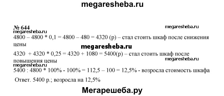 Подробный решебник (ГДЗ) по Математике за 6 (шестой) класс - готовый ответ §21 упражнение - (644). Авторы учебника: Мерзляк, Полонский, Якир, Базовый уровень. Издательство: Вентана-граф 2016-2023.