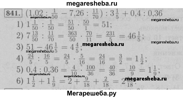 Подробный решебник (ГДЗ) по Математике за 6 (шестой) класс - готовый ответ §29 упражнение - (841). Авторы учебника: Мерзляк, Полонский, Якир, Базовый уровень. Издательство: Вентана-граф 2016-2023.