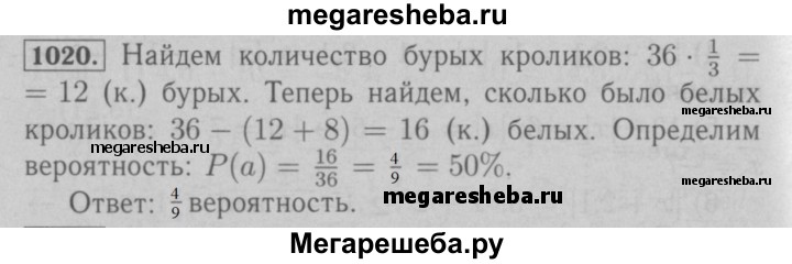 Подробный решебник (ГДЗ) по Математике за 6 (шестой) класс - готовый ответ §36 упражнение - (1020). Авторы учебника: Мерзляк, Полонский, Якир, Базовый уровень. Издательство: Вентана-граф 2016-2023.