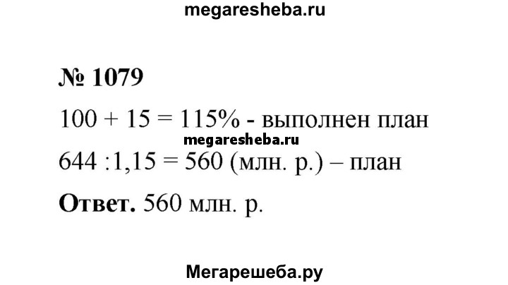 Подробный решебник (ГДЗ) по Математике за 6 (шестой) класс - готовый ответ §39 упражнение - (1079). Авторы учебника: Мерзляк, Полонский, Якир, Базовый уровень. Издательство: Вентана-граф 2016-2023.