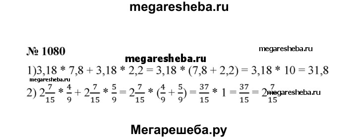 Подробный решебник (ГДЗ) по Математике за 6 (шестой) класс - готовый ответ §39 упражнение - (1080). Авторы учебника: Мерзляк, Полонский, Якир, Базовый уровень. Издательство: Вентана-граф 2016-2023.