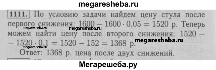 Подробный решебник (ГДЗ) по Математике за 6 (шестой) класс - готовый ответ §39 упражнение - (1111). Авторы учебника: Мерзляк, Полонский, Якир, Базовый уровень. Издательство: Вентана-граф 2016-2023.