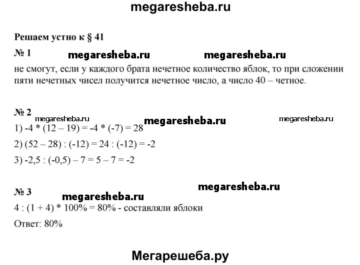 Подробный решебник (ГДЗ) по Математике за 6 (шестой) класс - готовый ответ §41 - Решаем устно. Авторы учебника: Мерзляк, Полонский, Якир, Базовый уровень. Издательство: Вентана-граф 2016-2023.