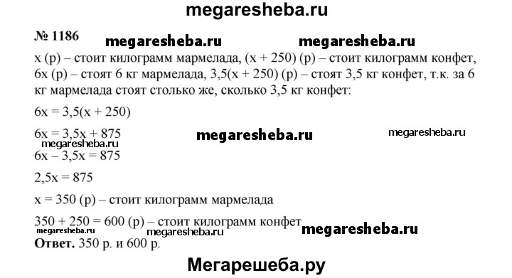 Подробный решебник (ГДЗ) по Математике за 6 (шестой) класс - готовый ответ §42 упражнение - (1186). Авторы учебника: Мерзляк, Полонский, Якир, Базовый уровень. Издательство: Вентана-граф 2016-2023.