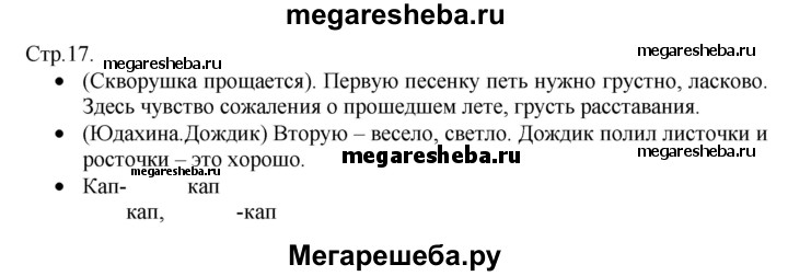 Подробный решебник (ГДЗ) по Музыке за 1 (первый) класс - готовый ответ страница - 17. Авторы учебника: Критская, Сергеева, Шмагина. Издательство: Просвещение 2017.