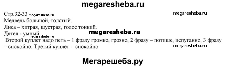 Подробный решебник (ГДЗ) по Музыке за 1 (первый) класс - готовый ответ страница - 32-33. Авторы учебника: Критская, Сергеева, Шмагина. Издательство: Просвещение 2017.