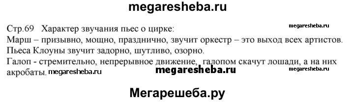 Подробный решебник (ГДЗ) по Музыке за 1 (первый) класс - готовый ответ страница - 69. Авторы учебника: Критская, Сергеева, Шмагина. Издательство: Просвещение 2017.