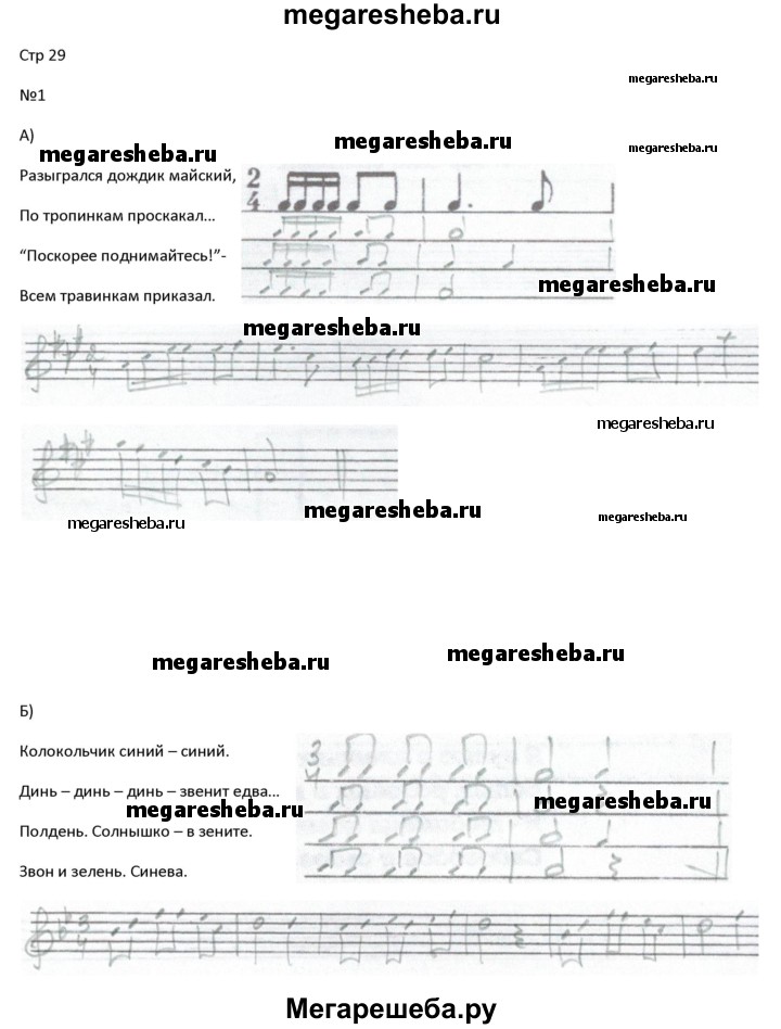 Подробный решебник (ГДЗ) по Музыке за 3 (третий) класс рабочая тетрадь Сольфеджио - готовый ответ страница - 29. Авторы учебника: Калинина. Издательство: Калинин 2016.