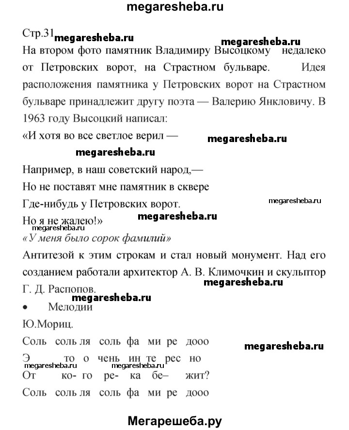 Подробный решебник (ГДЗ) по Музыке за 6 (шестой) класс творческая тетрадь - готовый ответ страница - 31. Авторы учебника: Сергеева, Критская. Издательство: Просвещение 2017.