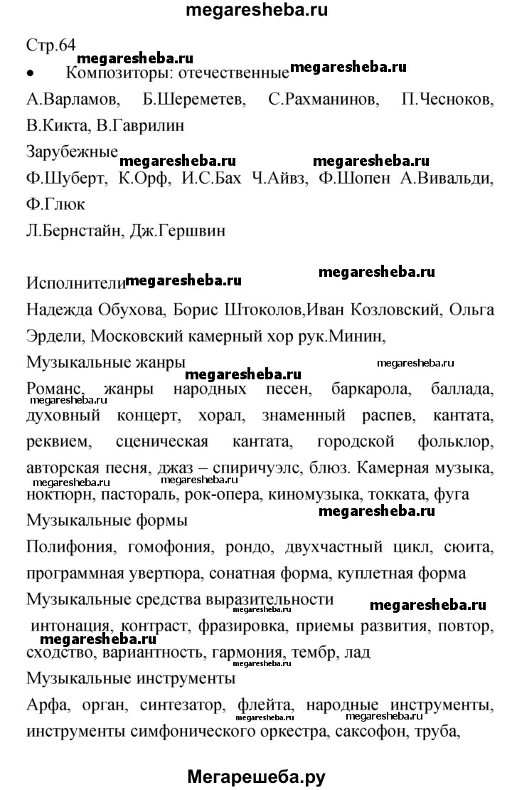 ГДЗ по музыке 6 класс Сергеева творческая тетрадь страница - 64