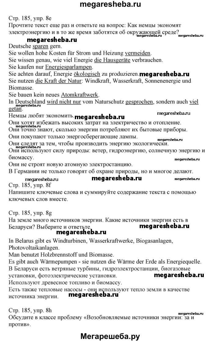 Подробный решебник (ГДЗ) по Немецкому языку за 11 (одиннадцатый) класс - готовый ответ страница - 185. Авторы учебника: Будько, Урбанович. Издательство: Высшая школа 2019.