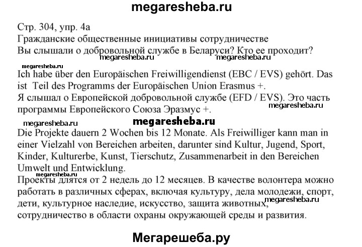Подробный решебник (ГДЗ) по Немецкому языку за 11 (одиннадцатый) класс - готовый ответ страница - 304. Авторы учебника: Будько, Урбанович. Издательство: Высшая школа 2019.