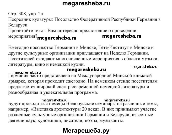 Подробный решебник (ГДЗ) по Немецкому языку за 11 (одиннадцатый) класс - готовый ответ страница - 308. Авторы учебника: Будько, Урбанович. Издательство: Высшая школа 2019.