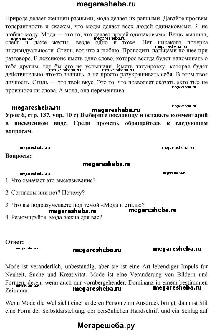 Подробный решебник (ГДЗ) по Немецкому языку за 11 (одиннадцатый) класс Wunderkinder Plus - готовый ответ страница - 137. Авторы учебника: Радченко, Лытаева, Гутборд, Базовый и углубленный уровень. Издательство: Просвещение 2018-2024.