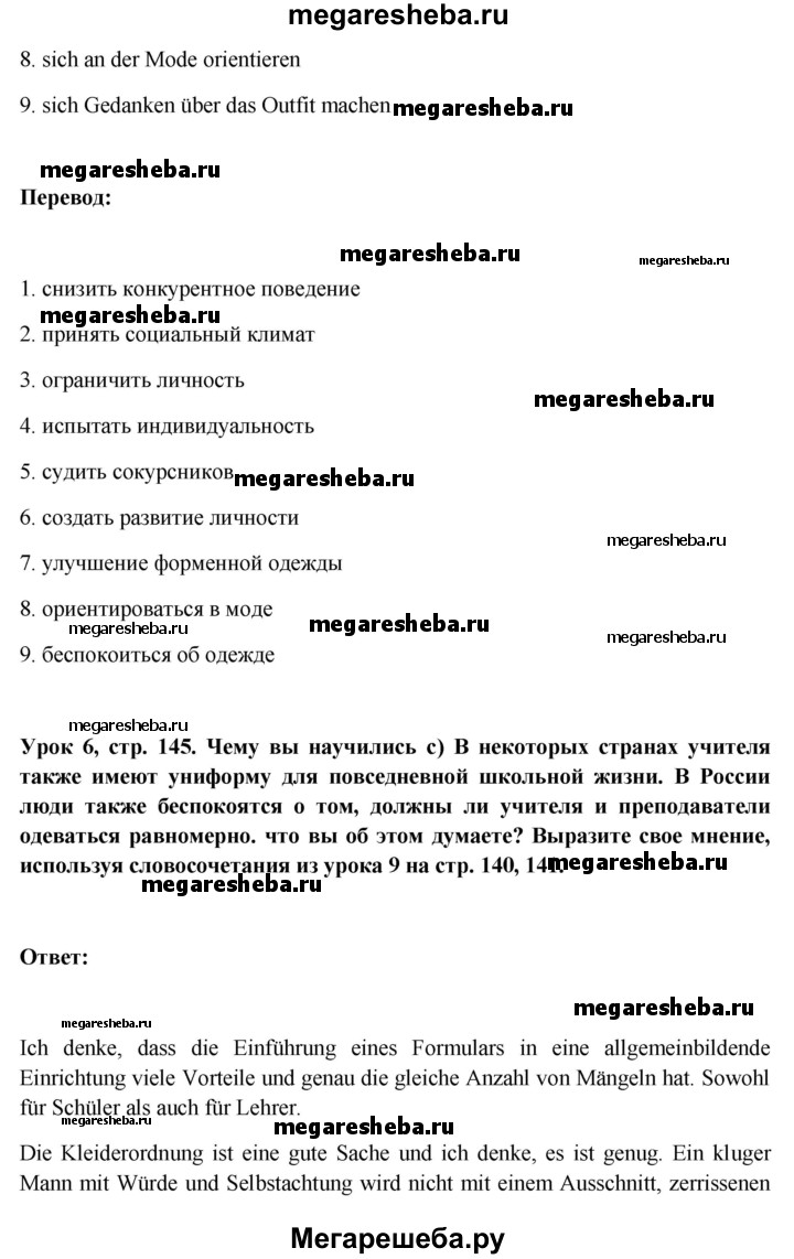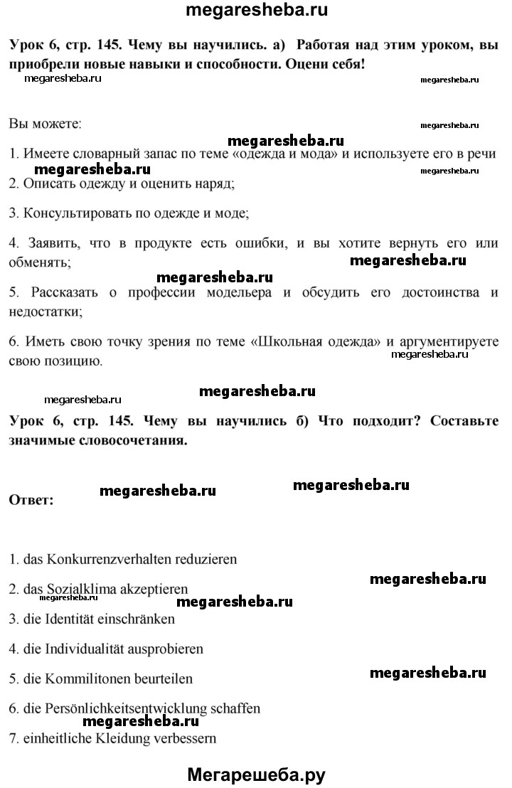 Подробный решебник (ГДЗ) по Немецкому языку за 11 (одиннадцатый) класс Wunderkinder Plus - готовый ответ страница - 145. Авторы учебника: Радченко, Лытаева, Гутборд, Базовый и углубленный уровень. Издательство: Просвещение 2018-2024.