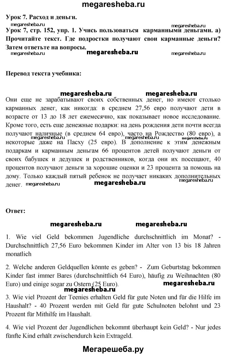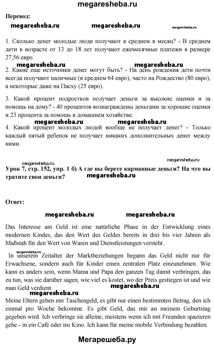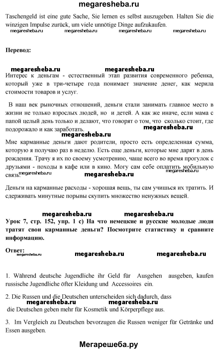 Подробный решебник (ГДЗ) по Немецкому языку за 11 (одиннадцатый) класс Wunderkinder Plus - готовый ответ страница - 152. Авторы учебника: Радченко, Лытаева, Гутборд, Базовый и углубленный уровень. Издательство: Просвещение 2018-2024.