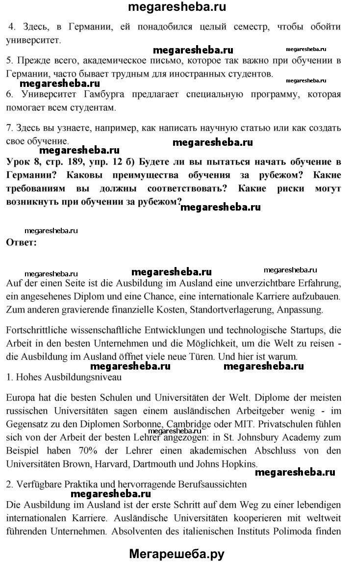 Подробный решебник (ГДЗ) по Немецкому языку за 11 (одиннадцатый) класс Wunderkinder Plus - готовый ответ страница - 189. Авторы учебника: Радченко, Лытаева, Гутборд, Базовый и углубленный уровень. Издательство: Просвещение 2018-2024.