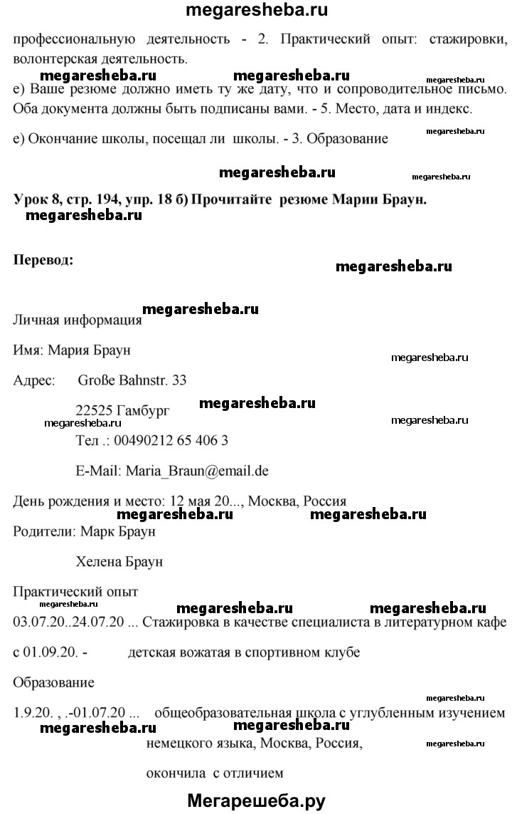 Подробный решебник (ГДЗ) по Немецкому языку за 11 (одиннадцатый) класс Wunderkinder Plus - готовый ответ страница - 194. Авторы учебника: Радченко, Лытаева, Гутборд, Базовый и углубленный уровень. Издательство: Просвещение 2018-2024.