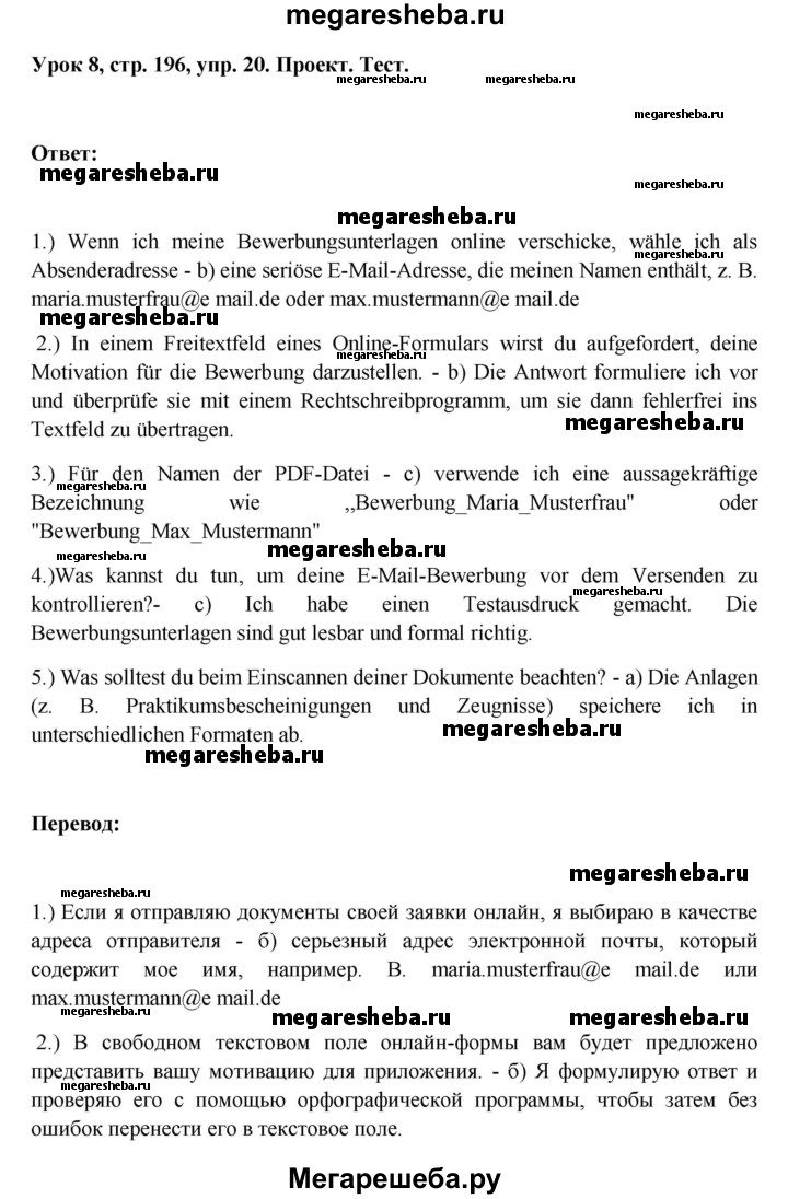 Подробный решебник (ГДЗ) по Немецкому языку за 11 (одиннадцатый) класс Wunderkinder Plus - готовый ответ страница - 196. Авторы учебника: Радченко, Лытаева, Гутборд, Базовый и углубленный уровень. Издательство: Просвещение 2018-2024.