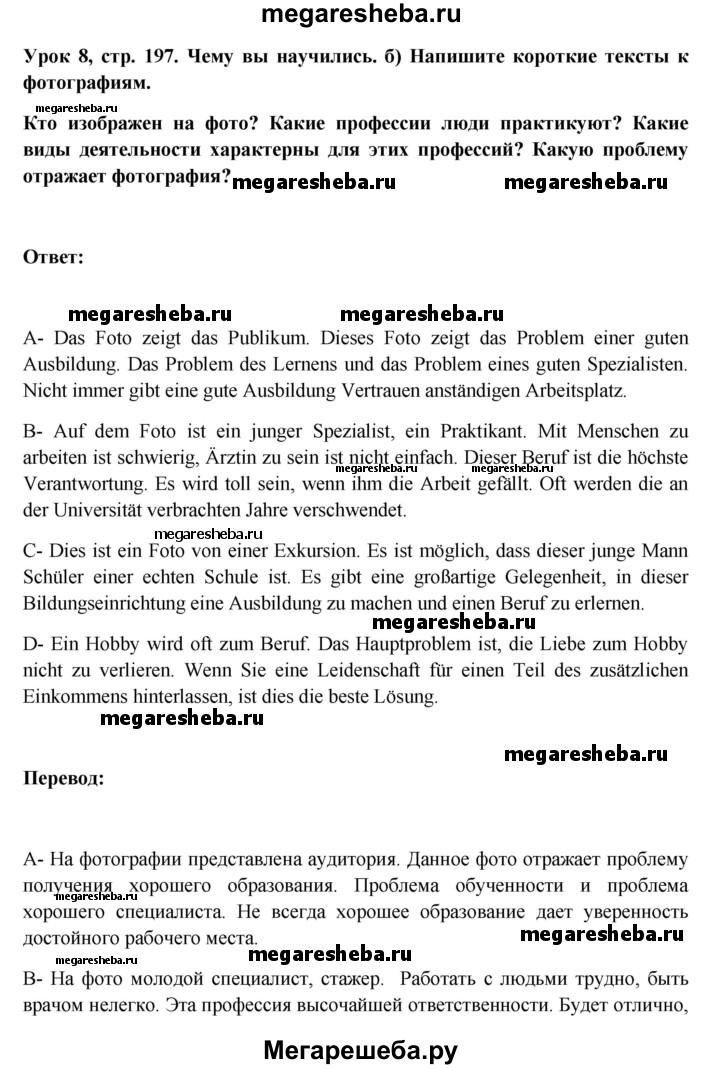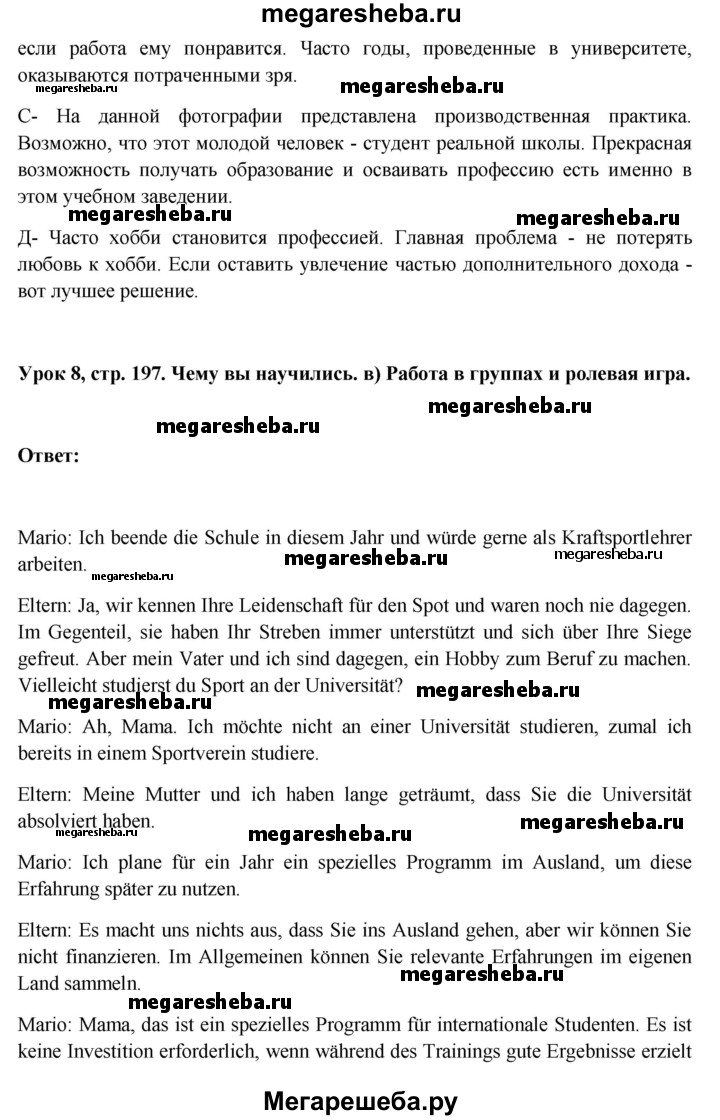 Подробный решебник (ГДЗ) по Немецкому языку за 11 (одиннадцатый) класс Wunderkinder Plus - готовый ответ страница - 197. Авторы учебника: Радченко, Лытаева, Гутборд, Базовый и углубленный уровень. Издательство: Просвещение 2018-2024.