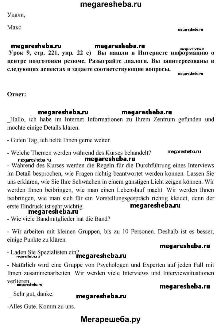 Подробный решебник (ГДЗ) по Немецкому языку за 11 (одиннадцатый) класс Wunderkinder Plus - готовый ответ страница - 221. Авторы учебника: Радченко, Лытаева, Гутборд, Базовый и углубленный уровень. Издательство: Просвещение 2018-2024.