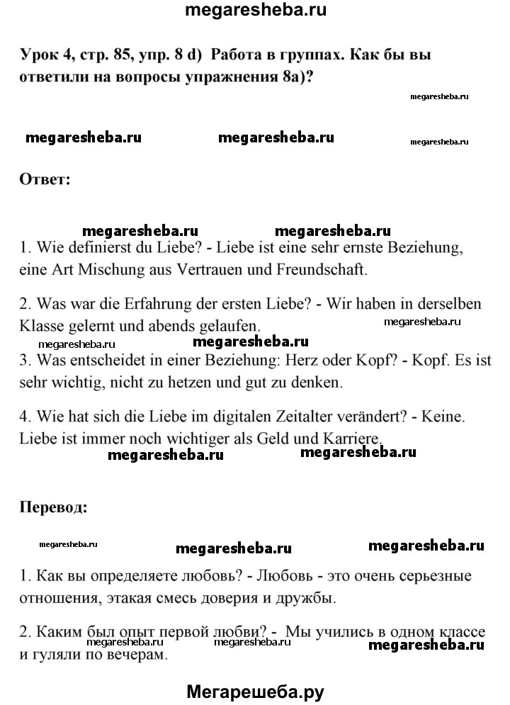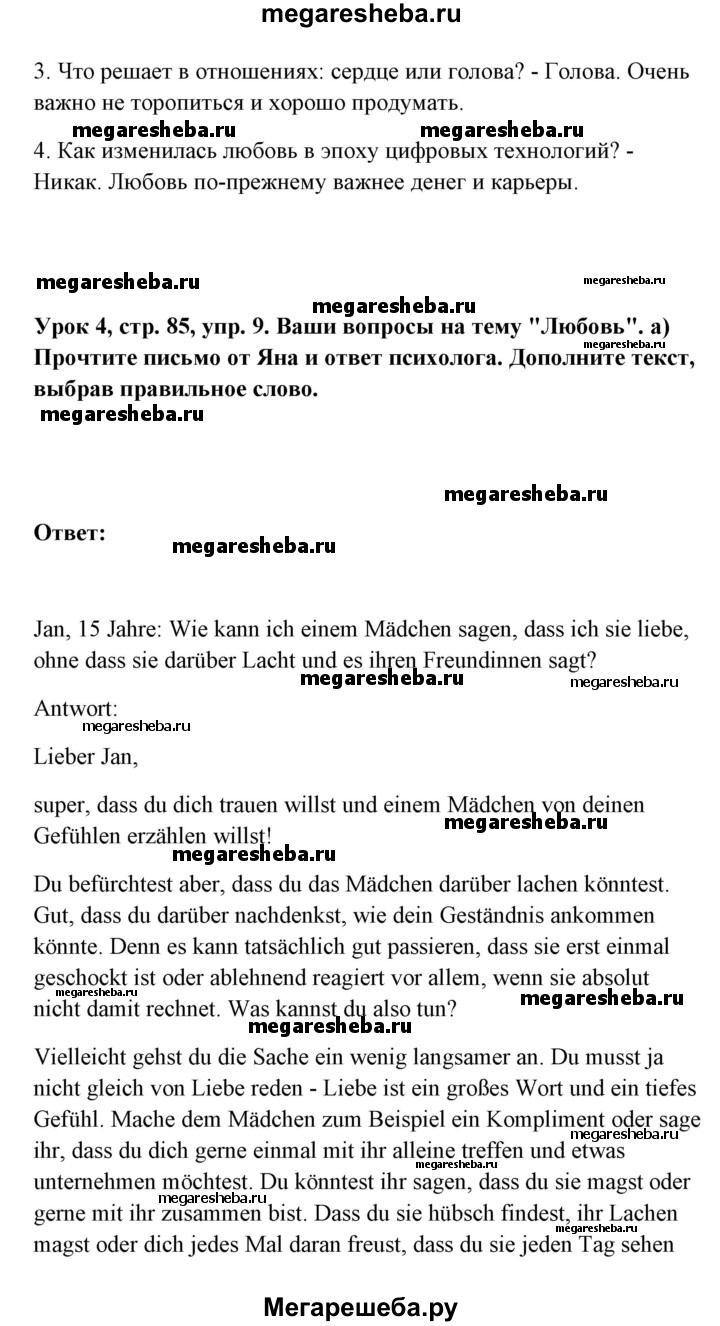 Подробный решебник (ГДЗ) по Немецкому языку за 11 (одиннадцатый) класс Wunderkinder Plus - готовый ответ страница - 85. Авторы учебника: Радченко, Лытаева, Гутборд, Базовый и углубленный уровень. Издательство: Просвещение 2018-2024.