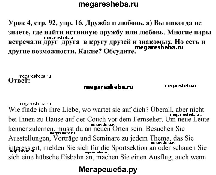 ГДЗ по немецкому языку 11 класс Радченко Wunderkinder Plus Базовый и углубленный уровень страница - 92