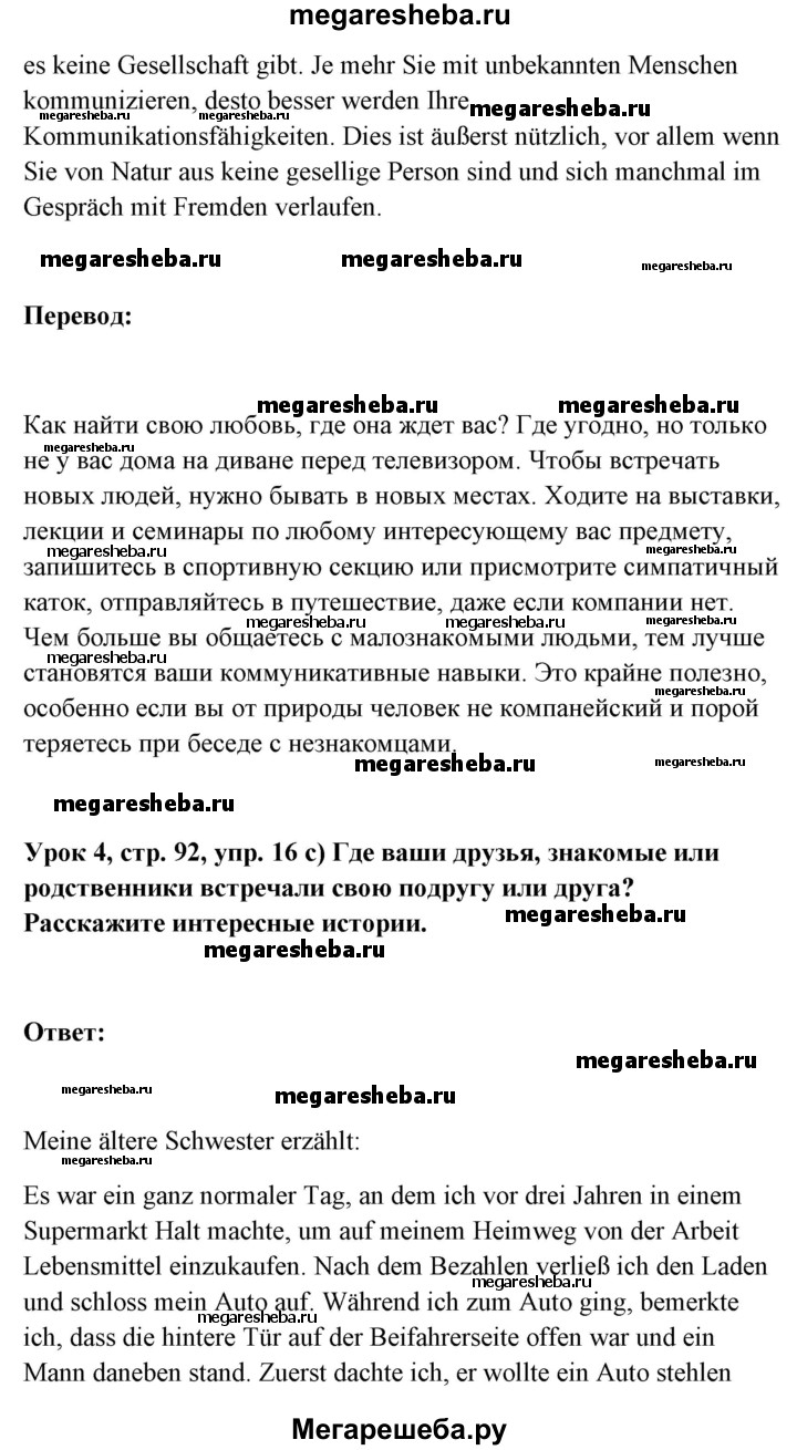 Подробный решебник (ГДЗ) по Немецкому языку за 11 (одиннадцатый) класс Wunderkinder Plus - готовый ответ страница - 92. Авторы учебника: Радченко, Лытаева, Гутборд, Базовый и углубленный уровень. Издательство: Просвещение 2018-2024.
