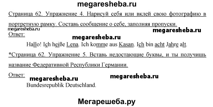 ГДЗ по немецкому языку 2 класс Бим рабочая тетрадь часть 1. страница - 62