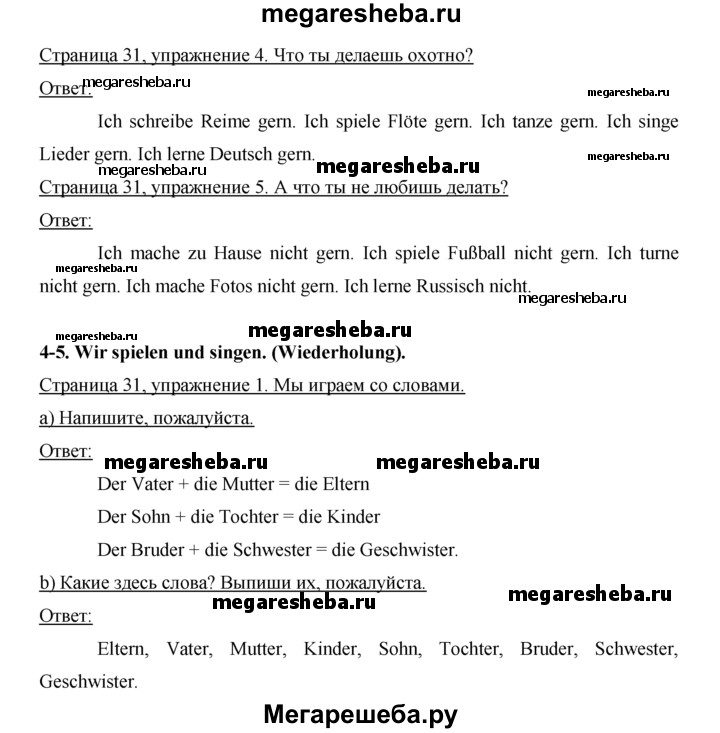 ГДЗ по немецкому языку 2 класс Бим рабочая тетрадь часть 2. страница - 31