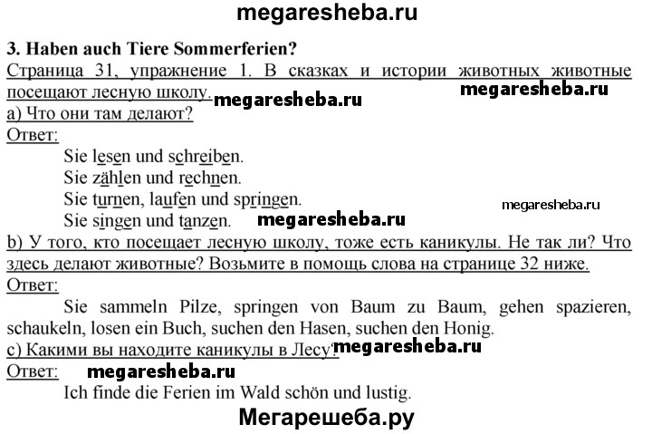 Подробный решебник (ГДЗ) по Немецкому языку за 4 (четвертый) класс - готовый ответ часть 1, страница - 31–32. Авторы учебника: Бим, Рыжова. Издательство: Просвещение 2015.