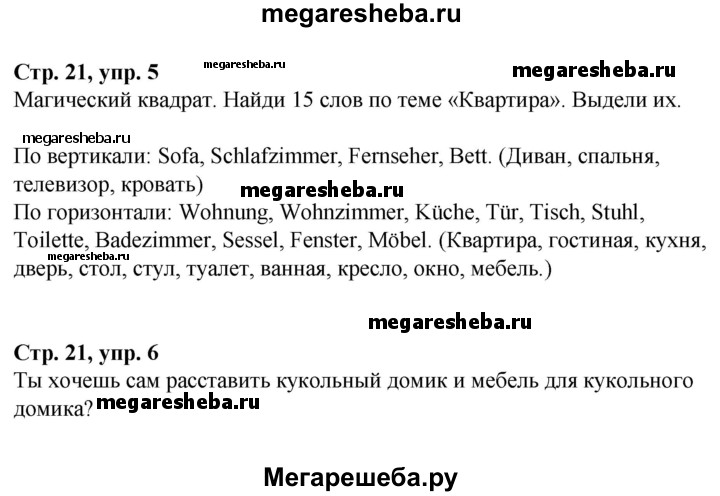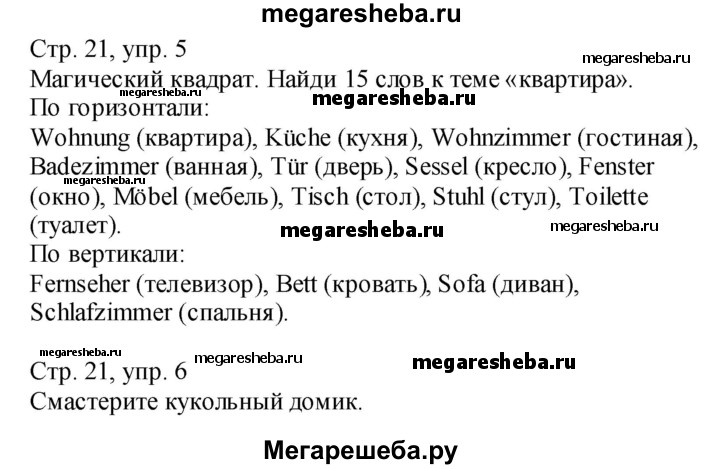 Подробный решебник (ГДЗ) по Немецкому языку за 4 (четвертый) класс рабочая тетрадь - готовый ответ страница - 21. Авторы учебника: Бим, Рыжова. Издательство: Просвещение 2016.