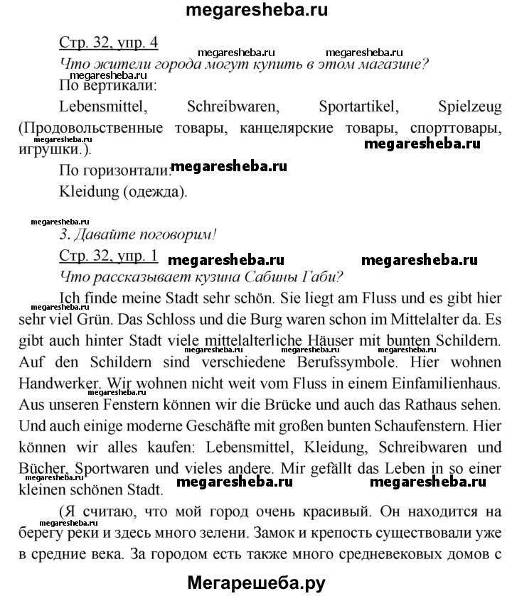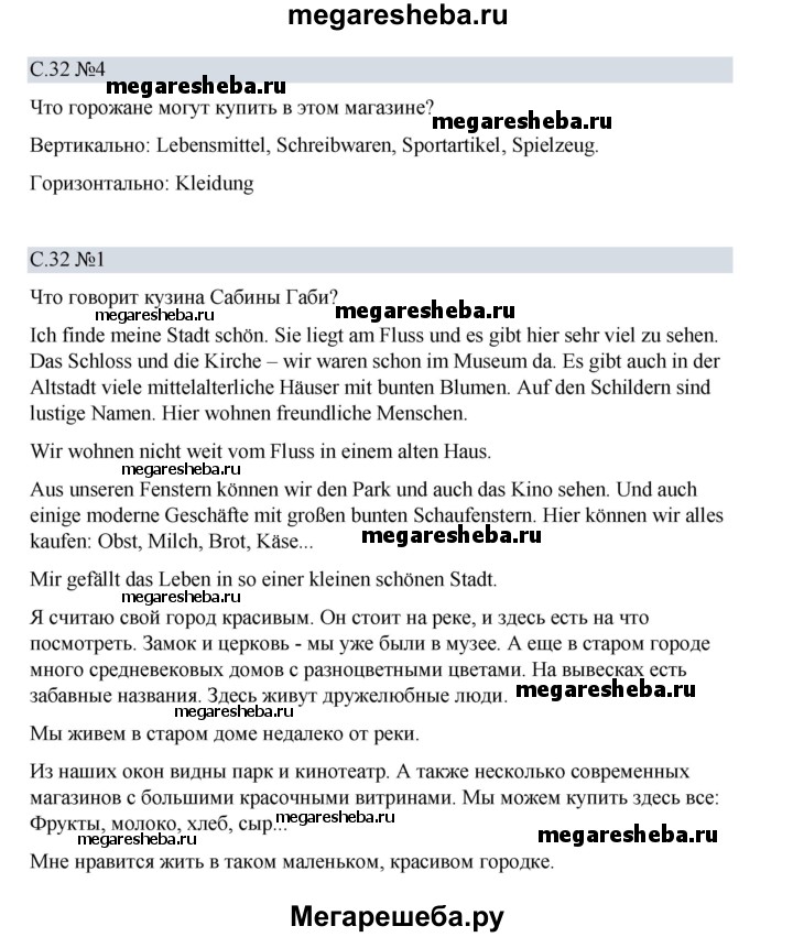 Подробный решебник (ГДЗ) по Немецкому языку за 5 (пятый) класс рабочая тетрадь - готовый ответ страница - 32. Авторы учебника: Бим, Рыжова. Издательство: Просвещение 2016-2023.