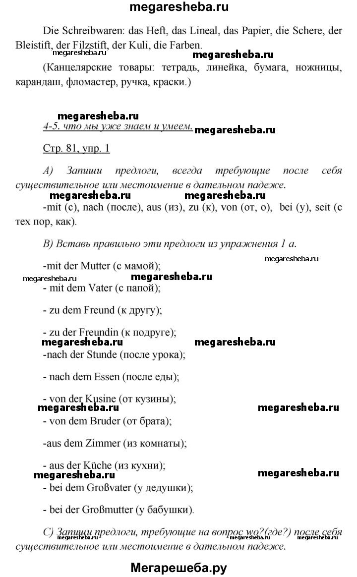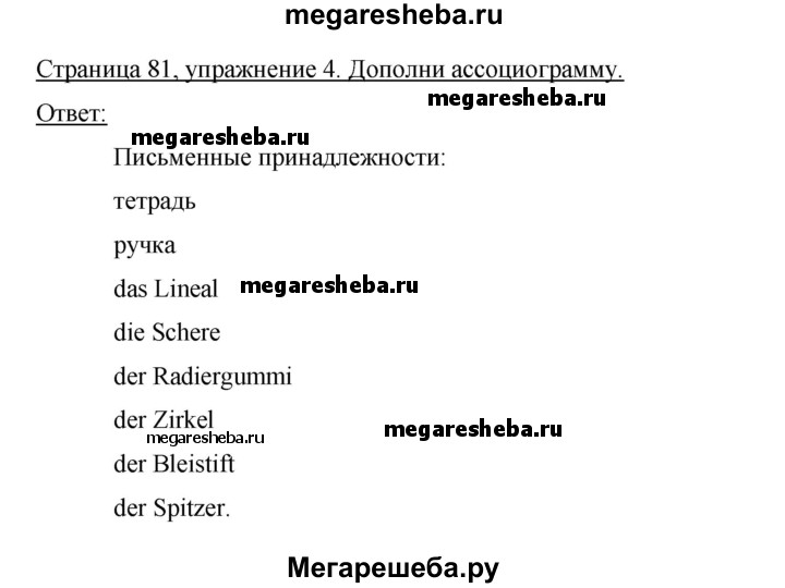 Подробный решебник (ГДЗ) по Немецкому языку за 5 (пятый) класс рабочая тетрадь - готовый ответ страница - 81. Авторы учебника: Бим, Рыжова. Издательство: Просвещение 2016-2023.
