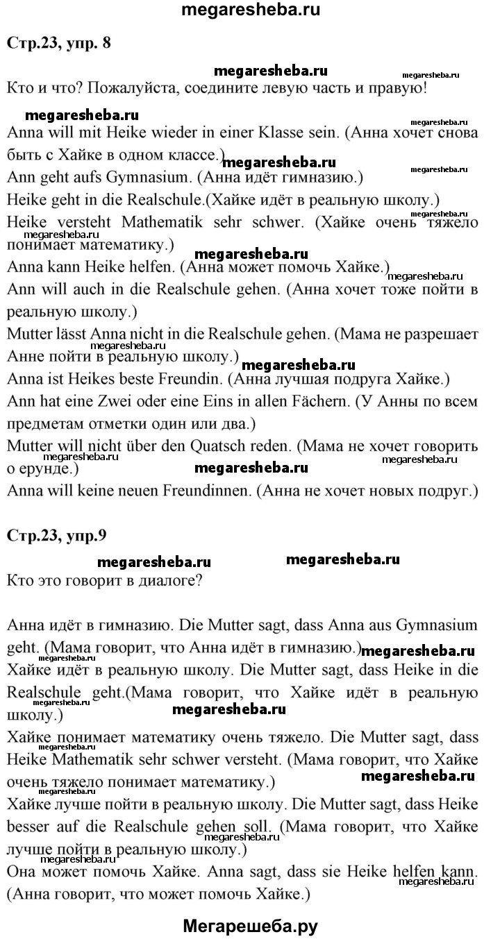 Подробный решебник (ГДЗ) по Немецкому языку за 7 (седьмой) класс Alles klar! - готовый ответ страница - 23. Авторы учебника: Радченко, Хебелер. Издательство: Дрофа 2017.
