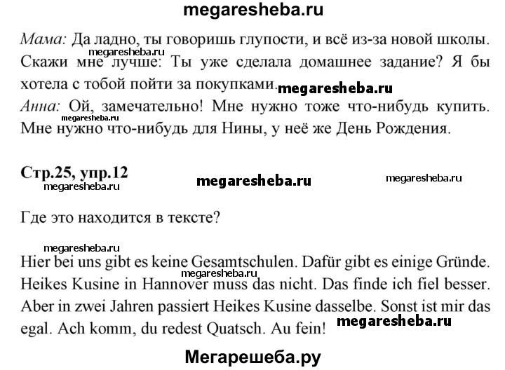 Подробный решебник (ГДЗ) по Немецкому языку за 7 (седьмой) класс Alles klar! - готовый ответ страница - 25. Авторы учебника: Радченко, Хебелер. Издательство: Дрофа 2017.