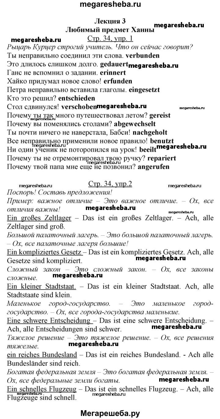 Подробный решебник (ГДЗ) по Немецкому языку за 7 (седьмой) класс Alles klar! - готовый ответ страница - 34. Авторы учебника: Радченко, Хебелер. Издательство: Дрофа 2017.