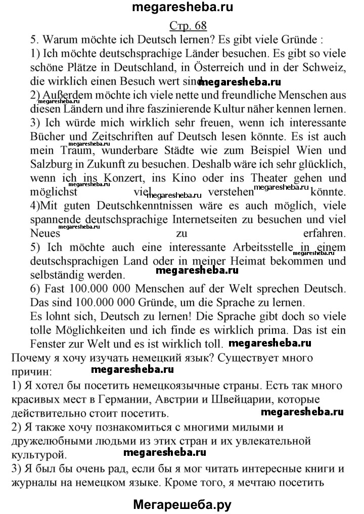 Подробный решебник (ГДЗ) по Немецкому языку за 7 (седьмой) класс Alles klar! - готовый ответ страница - 68. Авторы учебника: Радченко, Хебелер. Издательство: Дрофа 2017.