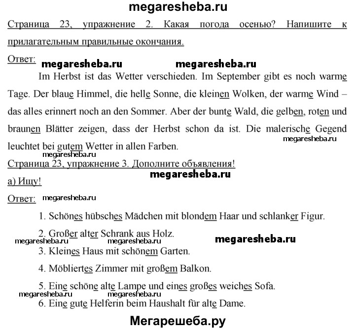 Подробный решебник (ГДЗ) по Немецкому языку за 7 (седьмой) класс рабочая тетрадь - готовый ответ страница - 23. Авторы учебника: Бим, Садомова, Фомичева, Крылова. Издательство: Просвещение 2016-2023.