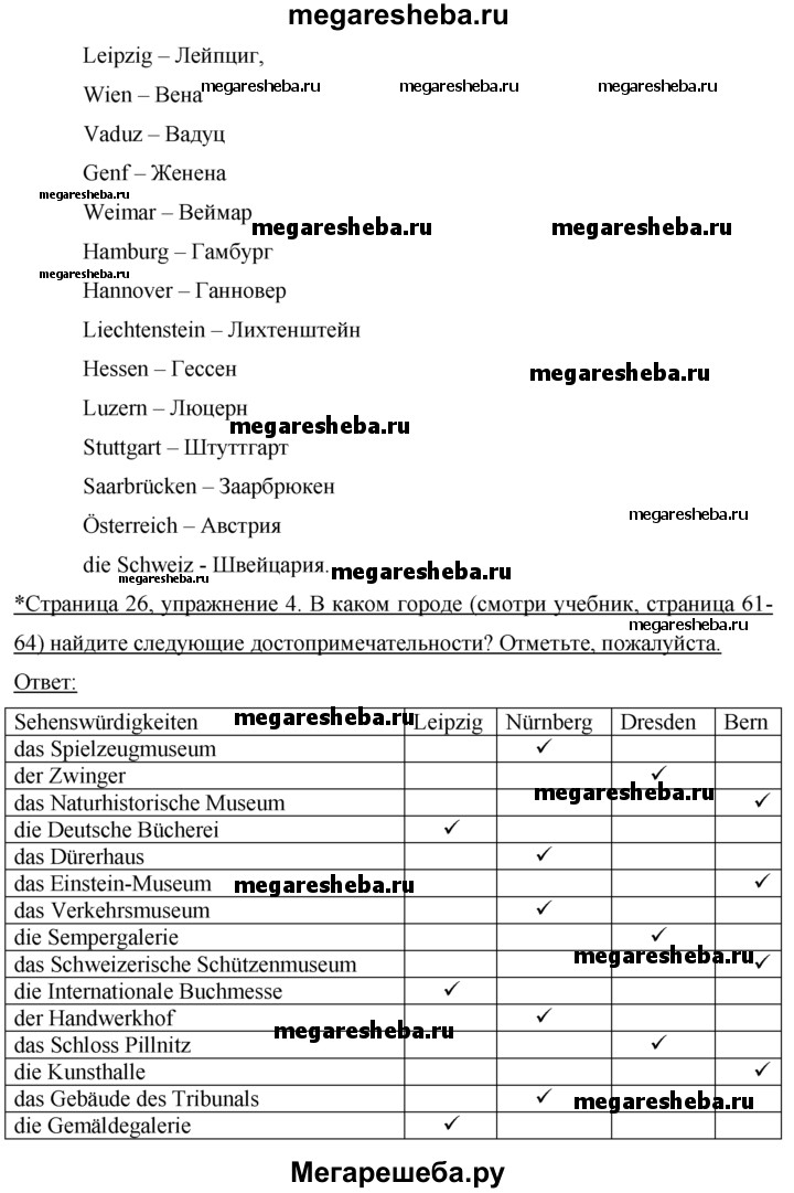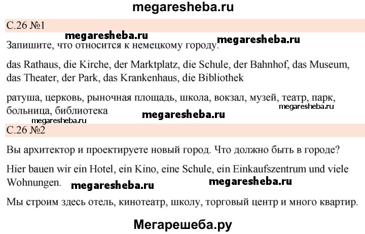 Подробный решебник (ГДЗ) по Немецкому языку за 7 (седьмой) класс рабочая тетрадь - готовый ответ страница - 26. Авторы учебника: Бим, Садомова, Фомичева, Крылова. Издательство: Просвещение 2016-2023.