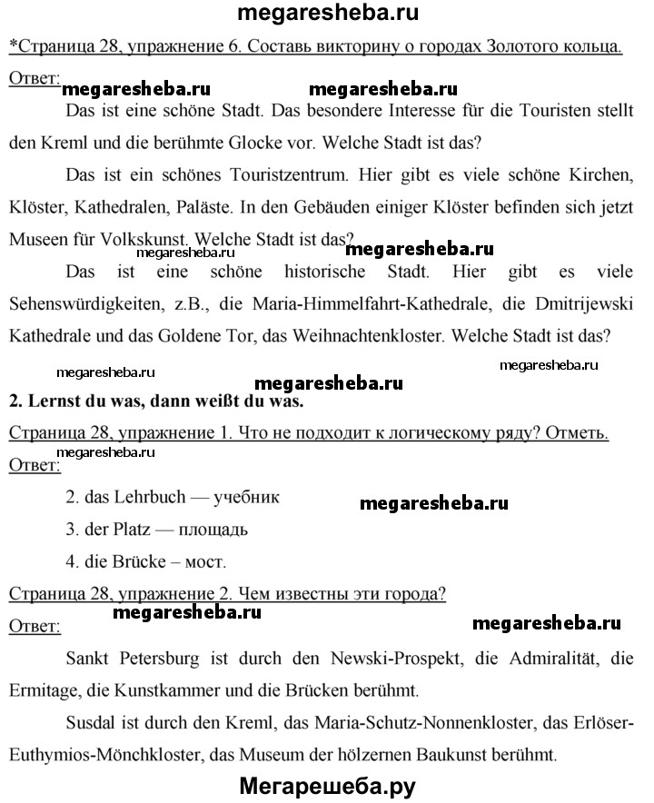 Подробный решебник (ГДЗ) по Немецкому языку за 7 (седьмой) класс рабочая тетрадь - готовый ответ страница - 28. Авторы учебника: Бим, Садомова, Фомичева, Крылова. Издательство: Просвещение 2016-2023.