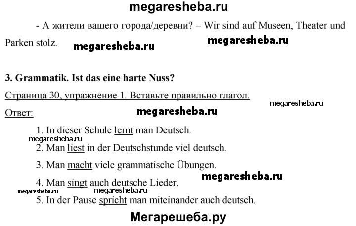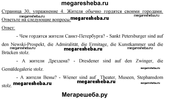 Подробный решебник (ГДЗ) по Немецкому языку за 7 (седьмой) класс рабочая тетрадь - готовый ответ страница - 30. Авторы учебника: Бим, Садомова, Фомичева, Крылова. Издательство: Просвещение 2016-2023.