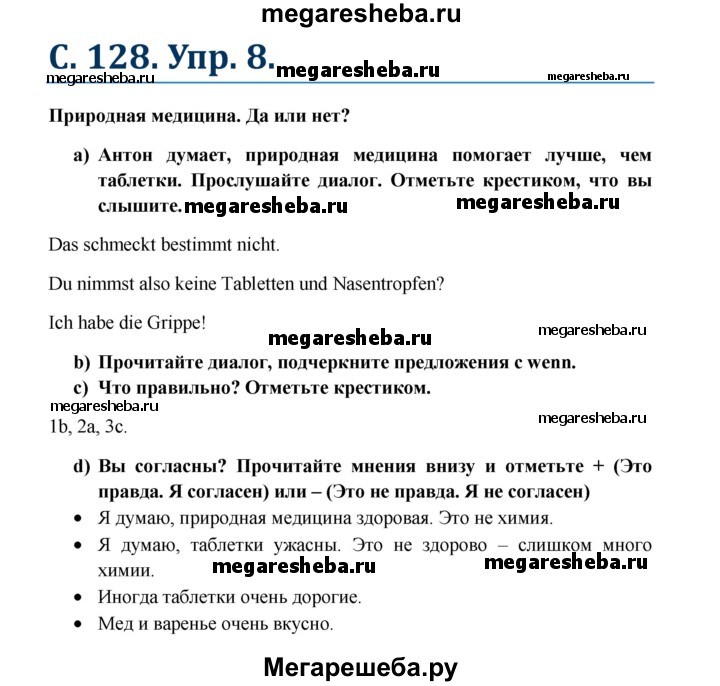 Подробный решебник (ГДЗ) по Немецкому языку за 7 (седьмой) класс - готовый ответ страница - 128. Авторы учебника: Радченко, Конго, Хебелер, Базовый и углубленный уровень. Издательство: Просвещение 2016-2019.