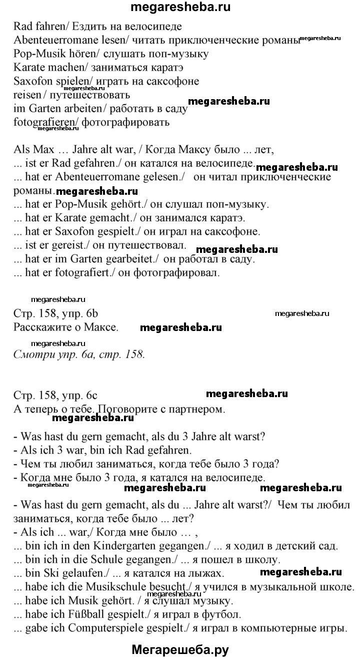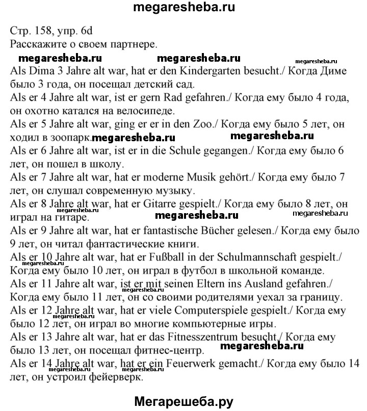 Подробный решебник (ГДЗ) по Немецкому языку за 7 (седьмой) класс - готовый ответ страница - 158. Авторы учебника: Радченко, Конго, Хебелер, Базовый и углубленный уровень. Издательство: Просвещение 2016-2019.