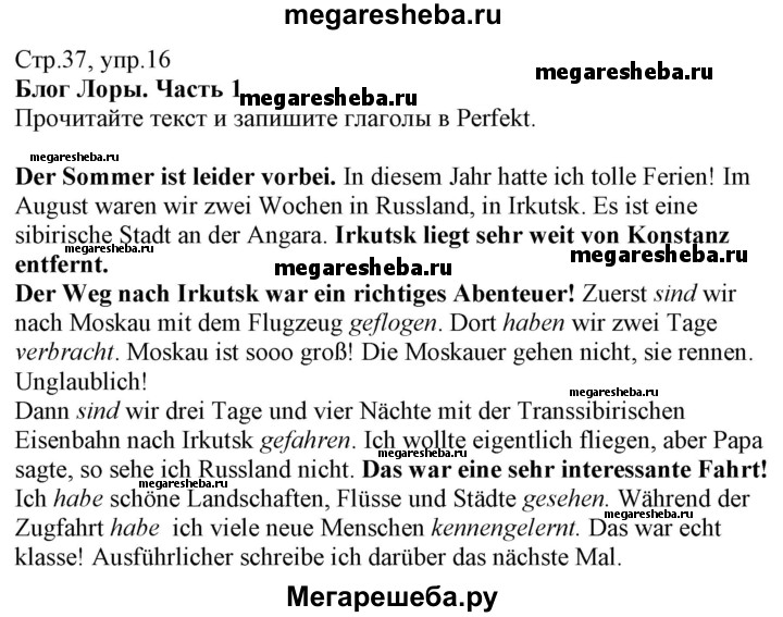 Подробный решебник (ГДЗ) по Немецкому языку за 7 (седьмой) класс - готовый ответ страница - 37. Авторы учебника: Радченко, Конго, Хебелер, Базовый и углубленный уровень. Издательство: Просвещение 2016-2019.