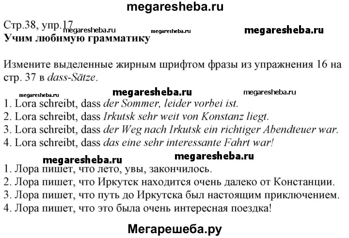 Подробный решебник (ГДЗ) по Немецкому языку за 7 (седьмой) класс - готовый ответ страница - 38. Авторы учебника: Радченко, Конго, Хебелер, Базовый и углубленный уровень. Издательство: Просвещение 2016-2019.