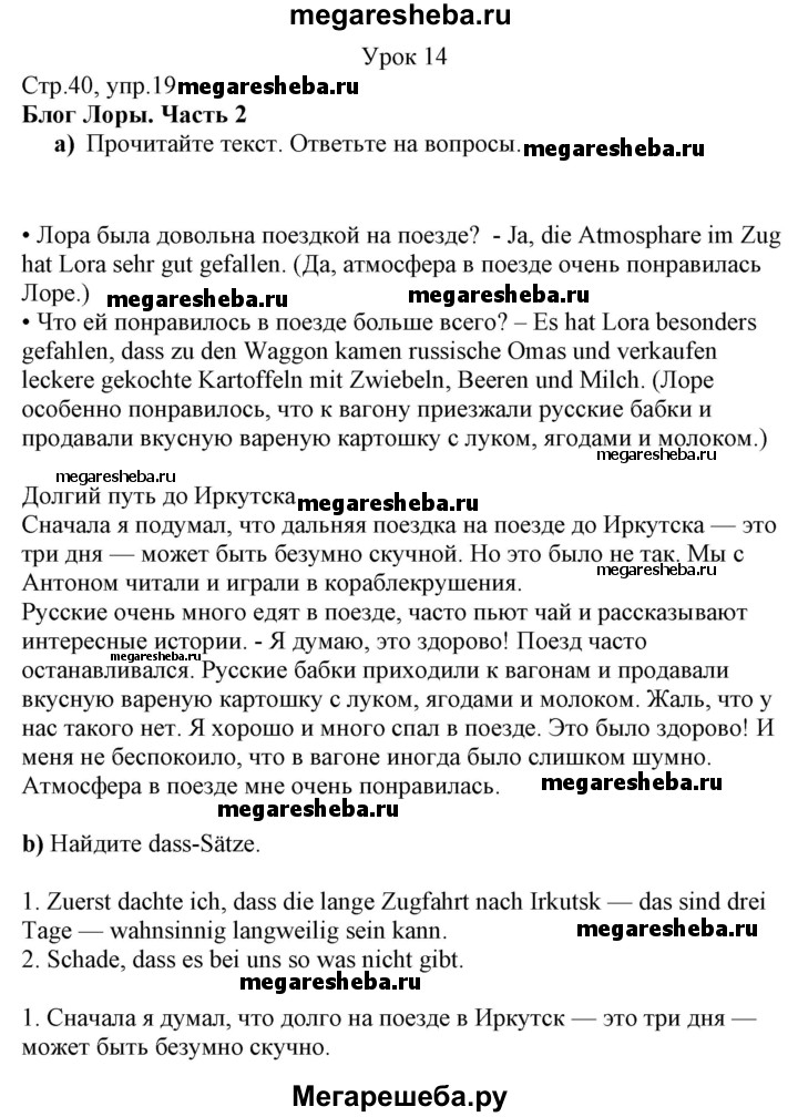 Подробный решебник (ГДЗ) по Немецкому языку за 7 (седьмой) класс - готовый ответ страница - 40. Авторы учебника: Радченко, Конго, Хебелер, Базовый и углубленный уровень. Издательство: Просвещение 2016-2019.