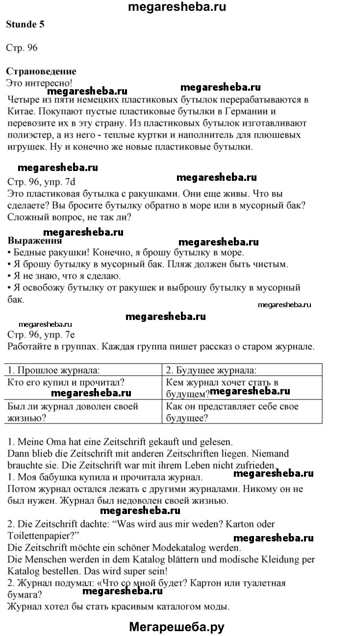 Подробный решебник (ГДЗ) по Немецкому языку за 7 (седьмой) класс - готовый ответ страница - 96. Авторы учебника: Радченко, Конго, Хебелер, Базовый и углубленный уровень. Издательство: Просвещение 2016-2019.